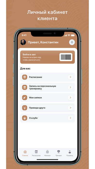 - Записаться на групповые и персональные тренировки;