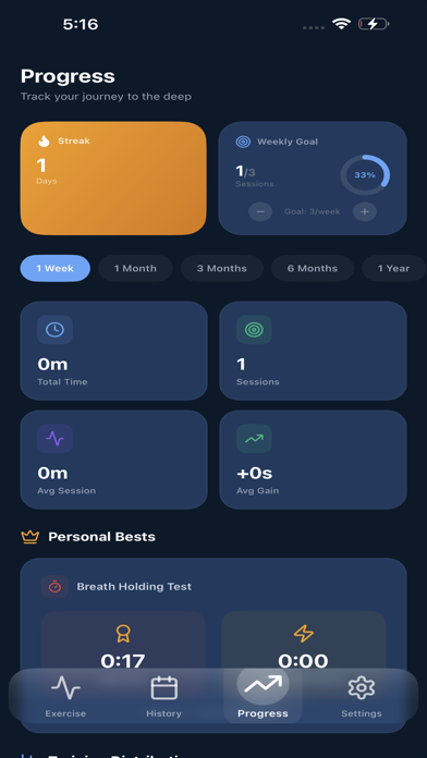 • Personal best tracking for breath-hold tests