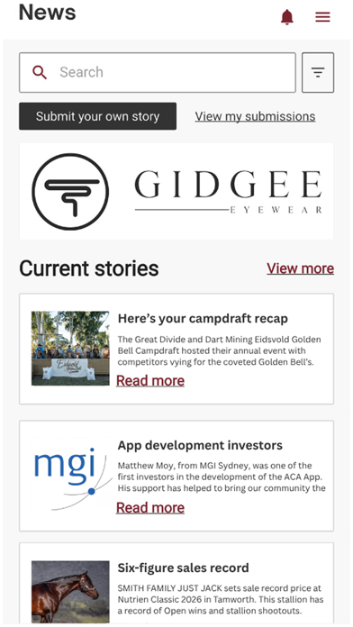 Screenshots of ACA: Australian Campdraft Assn iOS app